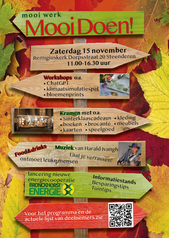 Tijdens de klimaatweek 2025 houd ik een vrolijke dag in de kerk van Steenderen voor iedereen. Voor deelnemers en programma zie: Mooi Doen!